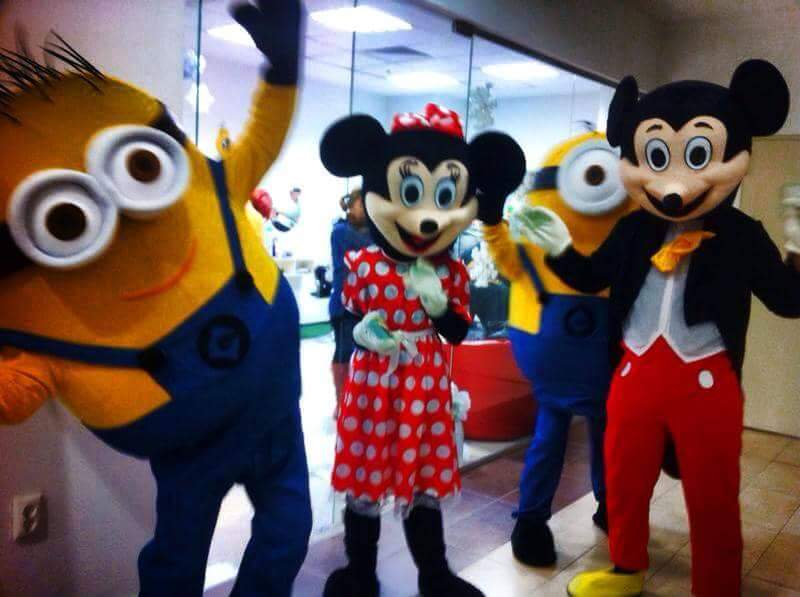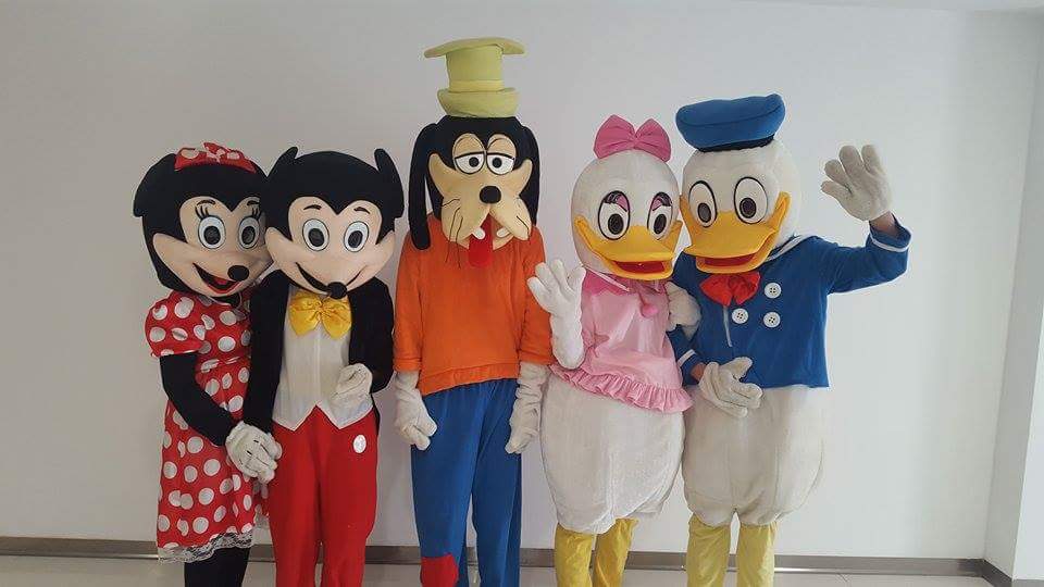 Mascote: Mickey Mouse, Minnie Mouse, Donald Duck, Daisy Duck, Pluto, Goofy, Hello Kitty, Bugs Bunny, Scooby Doo, Minion, Sponge Bob, Pepa Pig.